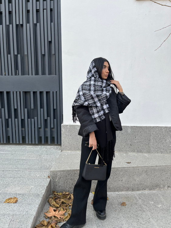 بیگ اسکارف شنل زنانه هیبو دیزاین، از پارچه شنل مرغوب بافته شده و با بافت ضخیم و گرم، بهترین انتخاب برای روزهای سرد زمستان است. این اسکارف بزرگ هم به عنوان شال و هم به عنوان پانچو قابل استفاده است.